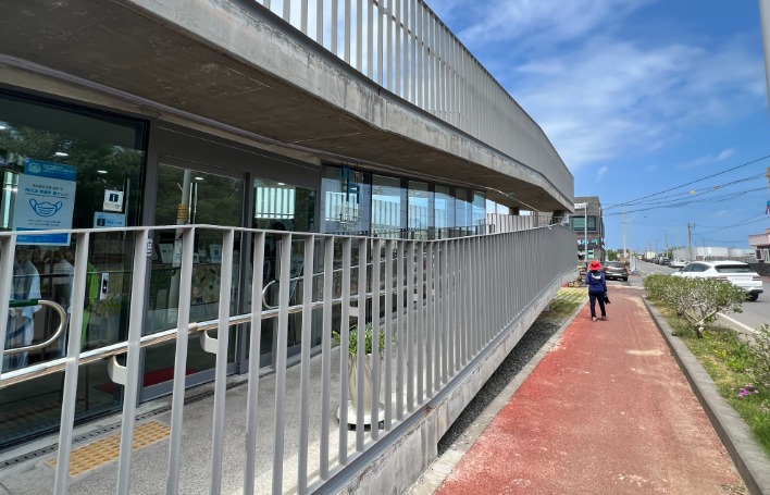 The first thing walkers need to note about this Info Center – it is not at the route start point. You need to begin the route and walk at least 10 minutes. Then you will find the center. Also, there are toilet facilities. These are very useful if you have just come off a long bus ride from Jeju City or Seogwipo City. The red circle is the start point. The red square is the information center.