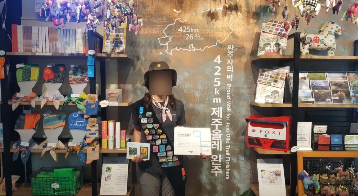 You can get your photo taken in front of the Proud Wall for Jeju Olle Trail Finishers.