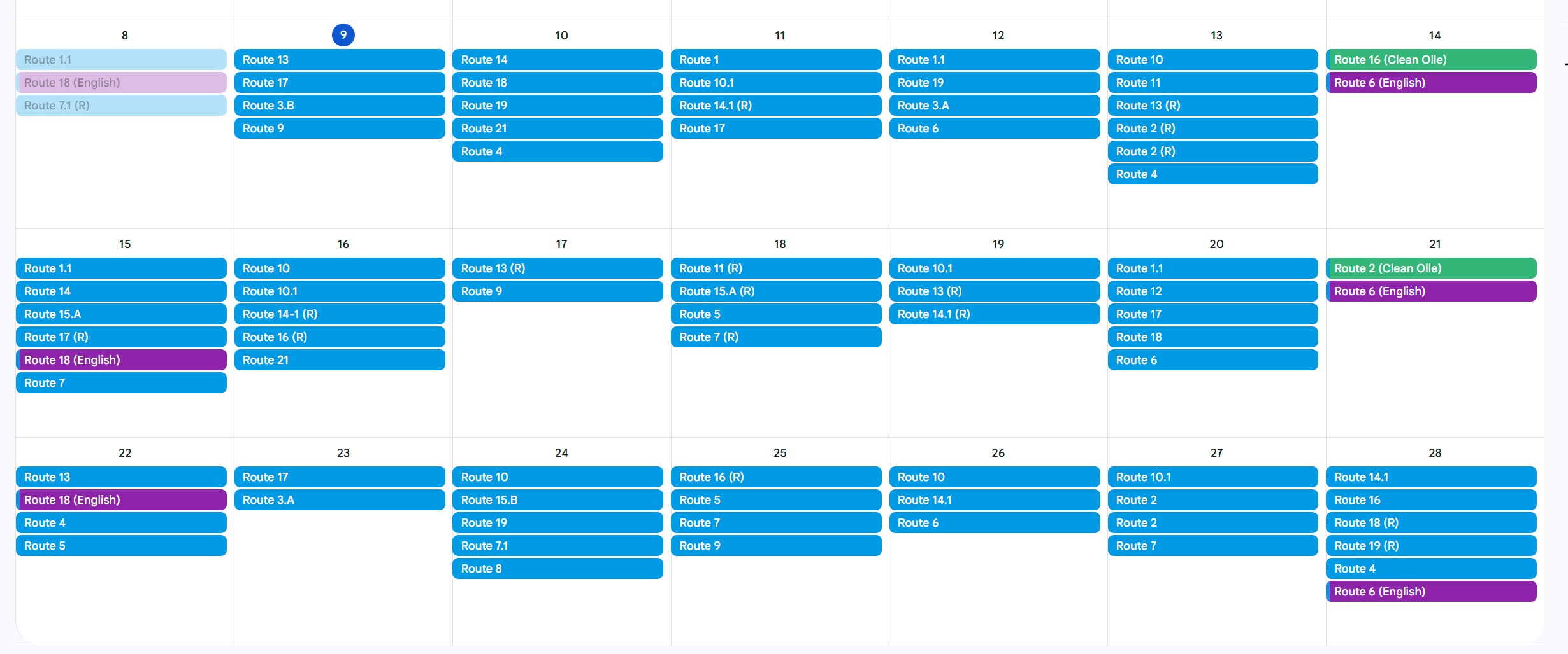 Blue-color guided walks begin at 09:30AM and will finish the whole route.