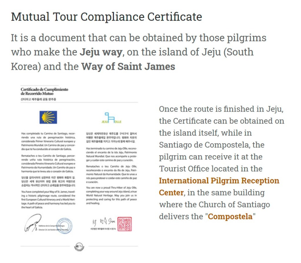 A walker will need all stamps from all routes in their paper Olle passport (20,000 KRW) or smartphone app Olle passport (free download, Korean-language only, Korean phone number needed to access some services, in-app passport purchase option 20,000 KRW) for the 437 km completion certificate and mini-medal (extra 5,000 KRW). More recently a 100 km completion certificate has become available too. We also have a joint completion certificate system with the Camino in Spain.